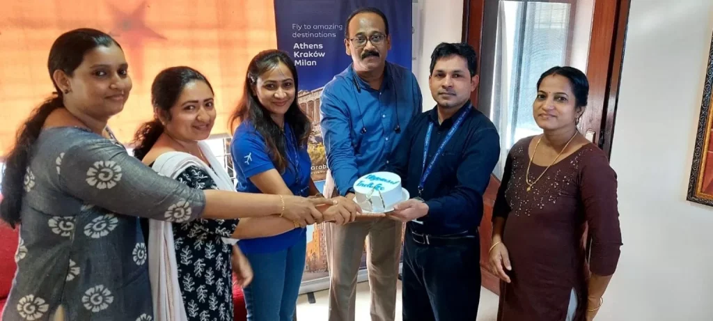 Indigo Airlines proudly celebrated the 18th anniversary of its successful partnership with the dedicated staff of Peacock Travel & Holidays Pvt Ltd, along with Mr. Anil Srinivasan & Mr. Rajeev KR, Directors of Peacock Travel & Holidays Pvt Ltd.